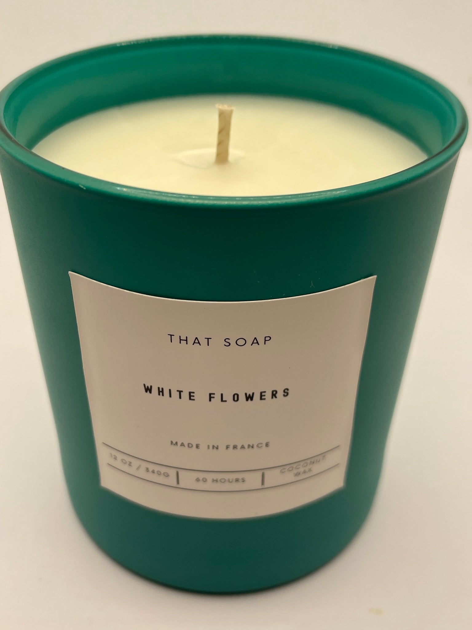 Pure floral luxury in a gorgeous matt turquoise jar. This stunning scented candle captures the essence of white flowers—jasmine, pear blossom, and gardenia—for a sophisticated, calming fragrance. Made with natural coconut and rapeseed wax for a clean, long-lasting burn.